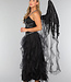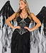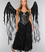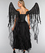 Dieses Maleficent Kostüm ist aus einem dehnbaren Stoff gefertigt. Das Kleid ist lang und schwarz-grau gefärbt. Das Kleid hat keine Ärmel, dafür aber große Flügel, die mit Eisenhaken am Kleid befestigt sind. Das Set wird mit einem Diadem mit Heiligenschein geliefert, um das Aussehen eines echten Engels zu erreichen.