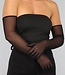 Diese Handschuhe sind aus einem elastischen Netzgewebe gefertigt, das sie durchscheinend macht. Oben ist ein extra fester elastischer Saum angebracht, damit sie nicht durchhängen.