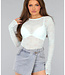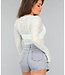 See Through Hellblaues Langarm-Top aus Spitze