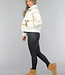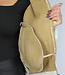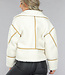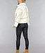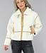 Dieser warme Mantel ist ecrufarben und sehr weich. Die Jacke hat Details in Wildlederoptik, wie zum Beispiel die Nähte. Die Jacke hat einen Reißverschluss und einen großen Kragen. Außerdem hat sie zwei Seitentaschen.