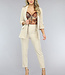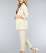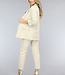 Dieses zweiteilige Set besteht aus einer adretten Hose und einem Blazer. Die Hose hat eine hohe Taille und wird mit einem Reißverschluss geschlossen. Auf der Vorderseite befinden sich zwei Ziertaschen. Die Beine verlaufen gerade, so dass der Anzug auch mit Turnschuhen oder hohen Schuhen gut aussieht! Der Blazer hat umgeschlagene Ärmel, die bis knapp über den Ellbogen reichen. Er fällt über das Gesäß und ist vorne offen. Der Blazer hat zwei Pattentaschen und Schulterpolster. Beide Teile enthalten keinen Stretchanteil. Natürlich können Sie den Blazer und die Hose auch einzeln kombinieren!