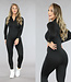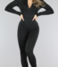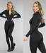 Dieser Overall ist aus einem glatten Stretch-Stoff gefertigt.