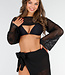 Dieser elegante schwarze Häkelstrandüberwurf strahlt Stil und Raffinesse aus. Mit seiner offenen Vorderseite und dem Schleifendetail an der Seite betont er Ihre Figur wunderbar. Die geräumigen Dreiviertel-Ärmel sorgen für einen trendigen Look, während der transparente Stoff ideal für einen Tag am Strand oder am Pool ist. Tragen Sie es über Ihrem Lieblingsbikini und vervollständigen Sie Ihr Sommeroutfit!