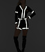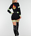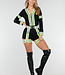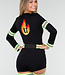 Cooles Feuerwehrkostüm in Form eines eng anliegenden Playsuits mit langen Ärmeln. Der schwarze Stoff ist mit neongelben und reflektierenden Streifen entlang des Körpers und der Ärmel verziert. Der Playsuit hat einen Reißverschluss vorne in der Mitte und einen verstellbaren Gürtel in der Taille für eine perfekte Passform. Die Bänder an den Armen sind abnehmbar und werden mit Klettverschluss geschlossen. Hergestellt aus weichem Stretchstoff, der angenehm zu tragen ist und sich schön an den Körper anschmiegt. Ideal für Mottopartys, Karneval oder Berufspartys.