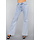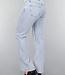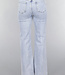 Diese Jeans ist aus einem Baumwoll-Denim-Stoff gefertigt. Der Schnitt der Jeans ist ausgestellt und hat eine mittlere Taille. Vorne wird sie mit einem Reißverschluss und einem einzigen Knopf geschlossen. Die Jeans hat zwei Eingrifftaschen vorne und zwei Gesäßtaschen. Um die Taille herum befinden sich fünf Schlaufen, durch die man einen Gürtel tragen kann. Die Hose ist dehnbar, was sie sehr angenehm zu tragen macht.