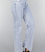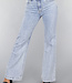 Diese Jeans ist aus einem Baumwoll-Denim-Stoff gefertigt. Der Schnitt der Jeans ist ausgestellt und hat eine mittlere Taille. Vorne wird sie mit einem Reißverschluss und einem einzigen Knopf geschlossen. Die Jeans hat zwei Eingrifftaschen vorne und zwei Gesäßtaschen. Um die Taille herum befinden sich fünf Schlaufen, durch die man einen Gürtel tragen kann. Die Hose ist dehnbar, was sie sehr angenehm zu tragen macht.