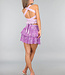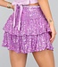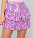 Dieser Artikel sieht aus wie ein Rock, aber er enthält eine Hose. Es ist aus einem Pailletten-Stretch-Stoff gefertigt, sodass die Hose gut sitzt. Es verfügt über mehrere plissierte Schichten, die schön übereinander fallen. Der Hosenrock hat eine hohe Taille und ist mit einem Reißverschluss auf der rechten Seite versehen.