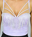 Dieses Balconette-Top ist auf der Vorderseite wunderschön mit Strassfransen verziert. Das Oberteil hat verstellbare Spaghettiträger und am Rücken einen Hakenverschluss, der aus fünf Haken besteht, die Sie in vier Positionen einstellen können. Die Cups des Bustiers sind mit einem Bügel ausgestattet und haben eine schöne Passform.