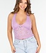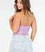 Dieses fliederfarbene Crop-Top ist ein echter Hingucker dank seiner zarten floralen Stretch-Spitze und dem tiefen, nicht durchscheinenden V-Ausschnitt. Der offene Rückenausschnitt verleiht dem Top einen eleganten und sommerlichen Look, während der durchsichtige Stoff für einen femininen Look sorgt. Perfekt zum Kombinieren mit High-Waisted-Jeans oder einem Rock für ein trendiges Outfit.
