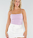 Fliederfarbenes Stretch-Top mit Pads und Spaghetti-Trägern