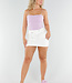 Dieses fliederfarbene Oberteil ist aus einem weichen und dehnbaren Material gefertigt, das sich dem Körper anpasst. Das Oberteil hat dünne Spaghetti-Träger und einen geraden Ausschnitt. An den Seiten ist ein leicht geraffter Effekt eingearbeitet, der für dezente Falten und eine schmeichelhafte Passform sorgt. Auf der Innenseite sind Pads eingearbeitet, die für zusätzliche Abdeckung und eine glatte Form sorgen. Dank des Stretchanteils liegt das Modell eng an.