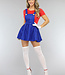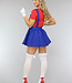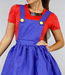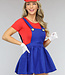 Dieses Mario-Kostüm besteht aus einem Kleid mit verschiedenen zusätzlichen Accessoires. Dieses Kleidungsstück hat keinen Verschluss, kann aber leicht an- und ausgezogen werden. Der Rock fällt schön und die Hosenträger sind am Oberteil befestigt. Der Schnurrbart ist an einem Gummiband befestigt, so dass man ihn sich um den Kopf legen kann. Natürlich kannst du ihn dir auch einfach um den Hals hängen. Dazu gibt es zwei Handschuhe und eine passende Mütze.