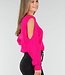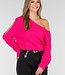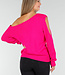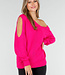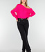 Dieser fuchsiafarbene Pullover ist aus einem grob gestrickten Stoff mit einem durchbrochenen Muster gefertigt. Das Modell hat lange Ärmel mit Cut-Out-Details. Der gerade Saum und die gerippten Bündchen sorgen für eine bequeme Passform. Der Pullover fällt locker und lässt sich ideal mit einer Jeans oder einem Rock kombinieren.