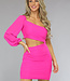 Dieses schöne Bodycon-Kleid passt sich dem Körper wunderbar an. Das Kleid hat einen Puffärmel und ist in einem leuchtenden Rosa gehalten. Das Kleid hat ein verspieltes Mesh-Overlay, das es leicht faltig macht. Um dem Kleid einen sexy Touch zu verleihen, hat es einen Ausschnitt an der Taille. An der Seite des Kleides befindet sich ein blinder Reißverschluss. Das Kleid hat einen hohen Stretchanteil.