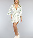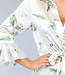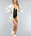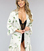 Dieser Kimono hat einen Satin-Look und fällt bis zur Mitte des Oberschenkels. Er hat einen sehr hübschen Blumendruck. Die Ärmel sind lang und fallen locker. An der Taille befindet sich auf jeder Seite eine Schlaufe, durch die Sie das mitgelieferte Taillenband stecken können, wenn Sie möchten. Durch dieses Band können Sie wählen, ob Sie den Kimono offen oder geschlossen tragen möchten. Sowohl am Ende der Ärmel als auch am unteren Ende des Kimonos ist er mit Rüschen versehen.