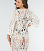 Dieses schöne beigefarbene Häkelkleid ist perfekt über einem Bikini. Der V-Ausschnitt und die gehäkelten langen Ärmel geben einen schönen Effekt. Der gehäkelte Stoff hat einen schönen Druck, der Ihre Figur schön betont. Eine Farbe, die nie aus der Mode kommt.