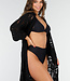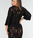 Dieses schöne schwarze Häkelkleid ist perfekt über einem Bikini. Der V-Ausschnitt und die gehäkelten langen Ärmel geben einen schönen Effekt. Der gehäkelte Stoff hat einen schönen Druck, der Ihre Figur schön betont. Eine Farbe, die nie aus der Mode kommt.