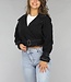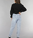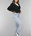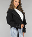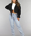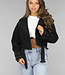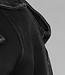 Diese Jeansjacke ist kurz geschnitten. Sie hat einen umgeschlagenen Kragen und lange Ärmel, ist mit einem Knopfverschluss versehen und hat zwei Taschen. Am unteren Ende der Jacke befindet sich ein Gürtel mit Schnalle. An den Schultern und an den Handgelenken ist die Jacke mit Epauletten versehen.