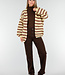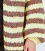 Flauschige Strickjacke mit breiten horizontalen Streifen in Gelb und Braun. Das Modell fällt locker und hat eine offene Vorderseite ohne Verschluss. Die Ärmel sind weit und leicht ballonförmig, was der Strickjacke einen weichen, bequemen Look verleiht. Die wollige Textur sorgt für einen warmen und kuscheligen Effekt.