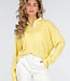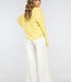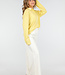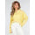 Dieses gelbe Langarmshirt hat ein horizontales Streifenmuster in zwei Gelbtönen. Das Modell hat einen Polokragen mit Knopfleiste vorne und drei Knöpfen. Die Ärmel sind lang und gerade geschnitten. Die Schulternähte sind versetzt und die Passform ist locker. Der Stoff enthält Stretch.