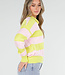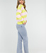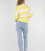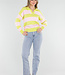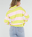 Dieser gelb-rosa gestreifte Pullover ist aus einem weichen, fein gestrickten Stoff mit angenehmem Stretch gefertigt. Das Modell hat einen klassischen Kragen mit einem dezenten V-Ausschnitt für einen sportlichen Look. Die langen Ärmel und die gerippten Bündchen sorgen für eine schöne Passform. Dank der lockeren Passform ist der Pullover bequem zu tragen und fällt geschmeidig um den Körper.