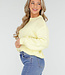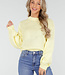 Dieser gelbe Pullover ist aus grobem Strick gefertigt und hat eine bequeme Oversize-Passform. Der Pullover hat einen Rundhalsausschnitt und breite, gerippte Bündchen an Saum und Ärmeln für zusätzliche Form und Stabilität. Die langen Ärmel sind weit geschnitten und sorgen für einen lässigen Effekt.