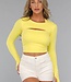 Dieses Bolero-Kroptop hat eine gelbe Farbe und fällt über die Brust. Es hat einen runden Ausschnitt und lange Ärmel. Es hat Daumenlöcher an den Enden der Ärmel. Dieses Top ist perfekt für Festivals oder Sommertage! Das Top, mit dem der Bolero kombiniert wird, muss bestellt werden, es ist nicht im Lieferumfang enthalten.