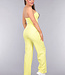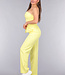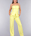 Dieses Set besteht aus einem taillierten Oberteil und einer Hose mit hoher Taille. Das Oberteil ist trägerlos und hat einen Sieben-Knopf-Verschluss. Auf der Vorderseite hat es zwei Ziertaschen, auf der Rückseite ist das Oberteil mit einem Stretchbund ausgestattet, der für einen guten Sitz sorgt. Die Hose hat einen einfachen Haken- und Reißverschluss. Das Set enthält keinen Stretchanteil, aber die Hose ist hinten mit einem Stretchband versehen, damit sie hinten gut sitzt. Die Hose hat ein gerades Beinmodell mit Paspelierung an der Vorderseite. Außerdem hat sie zwei Eingrifftaschen auf der Vorderseite.