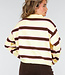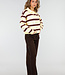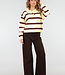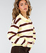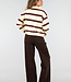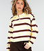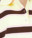Dieser Pullover ist aus fein gestricktem Stoff mit horizontalen Streifen in Hellgelb, Braun und Hellrosa gefertigt. Das Modell hat einen Polokragen mit einer kurzen Knopfleiste auf der Vorderseite. Die langen Ärmel sind mit gerippten Bündchen versehen und der Saum ist mit einem Rippstrickabschluss versehen. Der Pullover hat eine gerade, locker fallende Passform.
