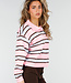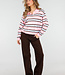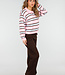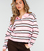 Dieser Pullover ist aus einem fein gestrickten Stoff mit horizontalen Streifen in Rosa, Braun und Hellblau gefertigt. Das Modell hat einen Polokragen mit einer kurzen Knopfleiste auf der Vorderseite. Die langen Ärmel sind mit gerippten Bündchen versehen und der Saum ist mit einem Rippstrickabschluss versehen. Der Pullover hat eine gerade, locker fallende Passform.