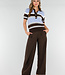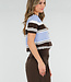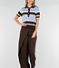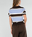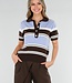 Dieses Polo-Oberteil ist in einer Kombination aus Hellblau, Braun und Weiß mit horizontalen Streifen gehalten. Das Modell ist aus einem fein gestrickten Stoff mit leichtem Stretch gefertigt und hat eine gerade Passform. Das Oberteil hat kurze Ärmel mit gerippten Bündchen und einen breiten gerippten Saum an der Unterseite. Der Halsausschnitt ist mit einem Kragen und einer kurzen Knopfleiste auf der Vorderseite versehen.