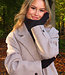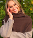 Dieser weiße Schal hat eine grob gestrickte Struktur und einen hohen Kragen, der den Hals vollständig umschließt. Das Modell fällt teilweise über die Schultern und bleibt dank der gerippten Strickverarbeitung gut an seinem Platz. Dieser Schal ist sehr praktisch zu Jacken mit offenem Halsausschnitt oder tiefem Kragen, da er den Hals und den oberen Brustbereich zusätzlich bedeckt. Das dehnbare Material sorgt für eine bequeme Passform und hält Sie an kalten Tagen warm.