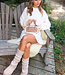 Dieses beigefarbene 2-teilige Set besteht aus einem locker sitzenden Pullover und einem passenden Rock. Der Pullover hat einen Rundhalsausschnitt, lange Ärmel und eine bequeme gerade Passform. Der Rock ist kurz geschnitten und hat ein gefaltetes Rippenmuster, das mit einem elastischen Bund für eine perfekte Passform abgerundet wird. Das Set kann sowohl zusammen als auch separat getragen werden.