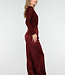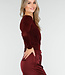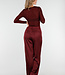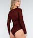 Bordeauxroter Glitzer-Body mit V-Ausschnitt und langen Ärmeln