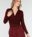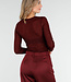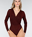 Dieser burgunderrote Body ist aus einem weichen Stretchstoff mit dezenten Glitzerdetails gefertigt. Das Modell hat lange Ärmel und einen tiefen V-Ausschnitt mit Überwurf. Der Stoff ist leicht durchscheinend und enthält Stretch, wodurch der Body schön sitzt und angenehm zu tragen ist. Dank des Verschlusses an der Unterseite bleibt er immer an seinem Platz.