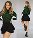 Dieses tolle Glitzertop ist aus einem weichen Material gefertigt und hat lange Ärmel. Der Body fällt eng und hat einen hohen Kragen. Es hat auch einen lustigen Glitzerdruck und enthält eine Menge Stretch. Unten ist es mit einem Hakenverschluss versehen.