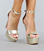 Goldene Sandalen mit Plateau und hohem Stilettoabsatz