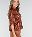 Bronzefarbenes Pailletten-Oberteil mit kurzen Ärmeln
