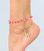 Dieses niedliche Fußkettchen besteht aus zwei Schichten, die jeweils einen eigenen Look haben. Eine Schicht ist mit dezenten rosa Steinen besetzt, die andere mit einem Traumfänger und Federdetails für einen Boho-Look. Das Fußkettchen hat einen Karabinerverschluss, der für einen sicheren und bequemen Sitz sorgt.