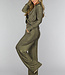 Diese Hose ist aus einem luftigen Stoff gefertigt und mit Glitzersteinen besetzt. Die Hose ist goldfarben und hat weite Beine. Die Hose hat einen elastischen Bund und zwei Seitentaschen.