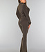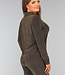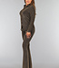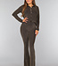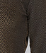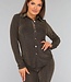 Diese Bluse ist aus einem feinen Stretch-Stoff gefertigt. Sie hat lange Ärmel und einen Kragen. Auf der Vorderseite befindet sich ein Knopfverschluss, der aus sechs goldenen Knöpfen besteht. Der Stoff des Oberteils ist mit einem glitzernden Zickzack-Muster verziert.