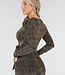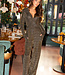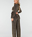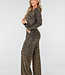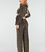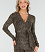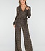 Dieser Jumpsuit mit goldenem Glitzerprint ist aus einem bequemen Stretchstoff gefertigt und hat lange Ärmel. Das Modell hat einen V-Ausschnitt, einen abnehmbaren Gürtel in der Taille und gerade Hosenbeine.