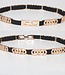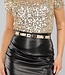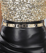 Dieser Gürtel ist aus einem dehnbaren Band gefertigt, so dass er vielen Größen passt. Er ist mit niedlichen goldenen Ringdetails verziert. Sie können diese Details auch selbst verschieben, um den Gürtel zu perfektionieren. Sie können den Gürtel mit dem goldenen Druckknopfverschluss an der Vorderseite schließen.