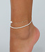 Dieses elegante Doppel-Fußkettchen ist eine dezente, aber stilvolle Ergänzung für jeden Sommerlook. Die Kombination aus einer goldfarbenen Gliederkette mit einer großen Perle und einem Band mit feinen Perlen wirkt verspielt und raffiniert. Dank des verstellbaren Verschlusses lässt sich das goldene Fußkettchen leicht anpassen, das Perlenband ist aus einem elastischen Faden gefertigt. Perfekt, um es mit Sandalen oder barfuß am Strand zu tragen, für einen sommerlichen und böhmischen Look.