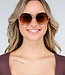 Diese Sonnenbrille hat einen runden Metallrahmen in Goldfarbe und Gläser mit einem braunen Farbverlauf. Das Modell hat einen schlanken Nasensteg mit verstellbaren Nasenpads. Die Bügel sind aus goldfarbenem Metall gefertigt und mit dekorativen Ringdetails an den Seiten verziert. Die Enden der Bügel sind mit schwarzem Kunststoff versehen.