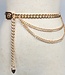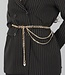 Dieser Gürtel ist goldfarben, hat eine Kettenoptik und ist vollständig verstellbar. Da der gesamte Gürtel eine Kette ist, kannst Du ihn so eng machen, wie es für Dich passt. Er verfügt über drei zusätzliche Detailketten.