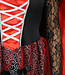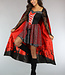 Dieses Kostüm besteht aus einem Kleid, das am Bauch ein schönes Korsett hat. Das Kleid hat lange Spitzenärmel mit Löchern für die Finger. Der Rock des Kleides ist mehrlagig und besteht aus einer Kombination aus einem bedruckten Stoff und einem Netzstoff. Auf der Rückseite des Kleides befindet sich ein Reißverschluss, der das An- und Ausziehen des Kleides erleichtert. Um den Look zu vervollständigen, kannst du den mitgelieferten Umhang mit Gruseldruck tragen.