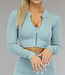 Graublaues Langarm-Sporttop mit Reissverschluss