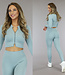Dieses dehnbare, langärmelige Oberteil hat einen doppelten Reißverschluss auf der Vorderseite, der sowohl von oben als auch von unten geöffnet werden kann.