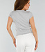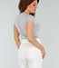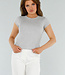 Dieses graue T-Shirt hat eine schmale Passform und liegt eng am Körper an. Es hat einen Rundhalsausschnitt und kurze, taillierte Ärmel. Der Stoff ist gerippt und enthält Stretch. Der Saum ist gerade und fällt auf die Hüfte. Das Shirt ist einfarbig und hat keinen Aufdruck.